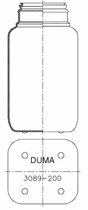 1000 ml Duma® Rectangular Jar, pharmaceutical tablet jar. Gerresheimer model 653091, content 1000 ml, (D x H) 96 mm x 81 mm x 179 mm, white HDPE with 54 mm neck.