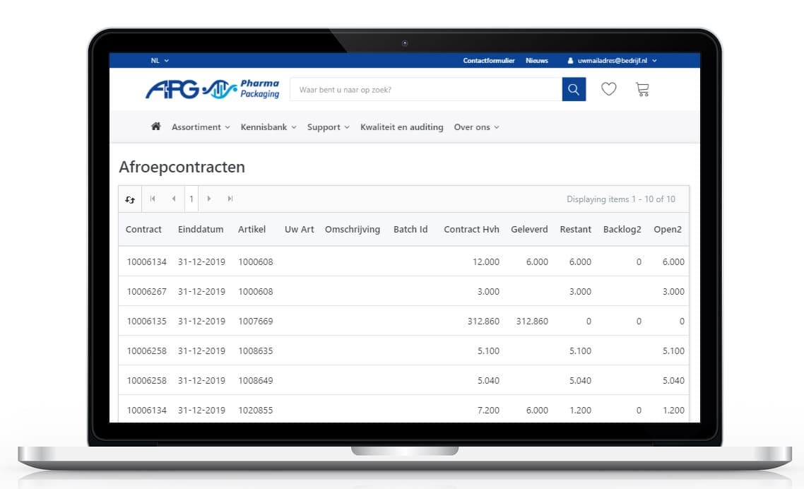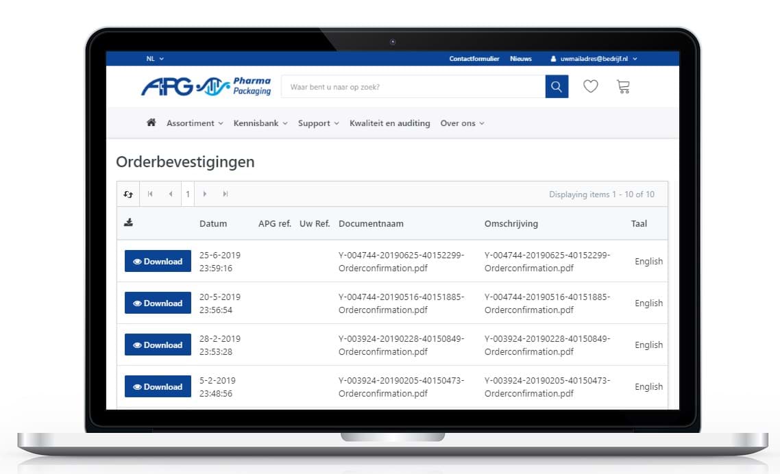On the day we receive the order, we try to confirm it. In many cases we are able to ship your goods the next working day. All order confirmations can be found under 'Order confirmations' within the transactions module. You will find all order confirmations in one place with associated information, such as:
