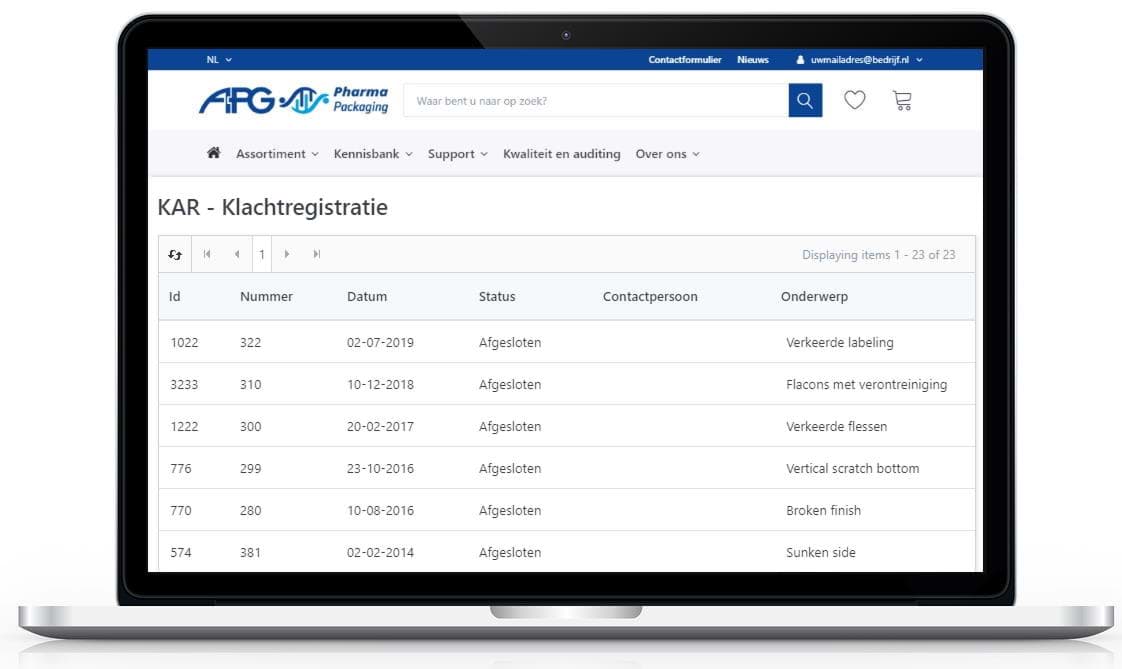 Your complaint is registered in our complaint handling reporting system. You can view the status of your complaint report 24/7 under 'CDR - Complaint registr.' within the Quality Doc's module. The benefits of the KAR are: