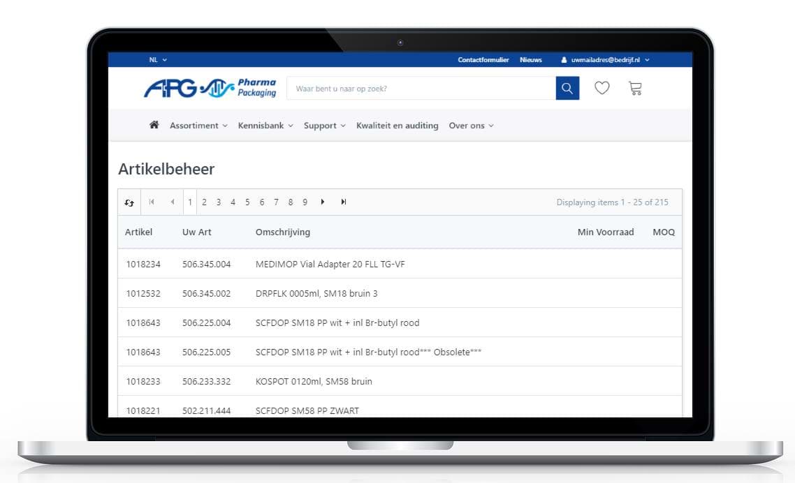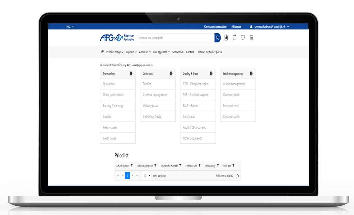 When requesting prices for specific items, quantities and place of delivery you will receive a detailed quote from APG Europe. All quotes that have been issued to you and your organization can be found under 'Quotations' within the transaction module.